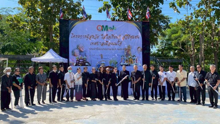 สถานีวิทยุ ม.ก.เชียงใหม่ ร่วมกิจกรรม “ผู้สูงวัยใส่ใจเรียนรู้ สู่วิถีชุมชน” เทศบาลเมืองแม่โจ้ ประจำปีงบประมาณ 2569 ครั้งที่ 1/2568 มอบไม้เท้าค้ำยัน 30 อัน แก่ผู้สูงอายุในเขตเทศบาลเมืองแม่โจ้ ต.หนองหาร อ.สันทราย จ.เชียงใหม่