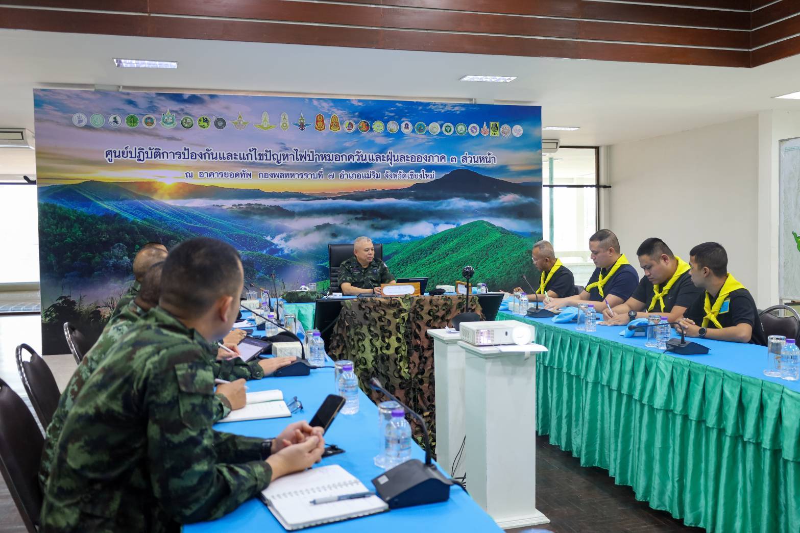 แม่ทัพภาคที่ 3 ติดตามสถานการณ์ไฟป่าหมอกควันภาคเหนือ พร้อมนำทหารพรานช่วยลาดตระเวนป้องกันไฟป่าในพื้นที่ล่อแหลม เชียงใหม่ 6 ก.พ. – ที่อาคารยอดทัพ พ