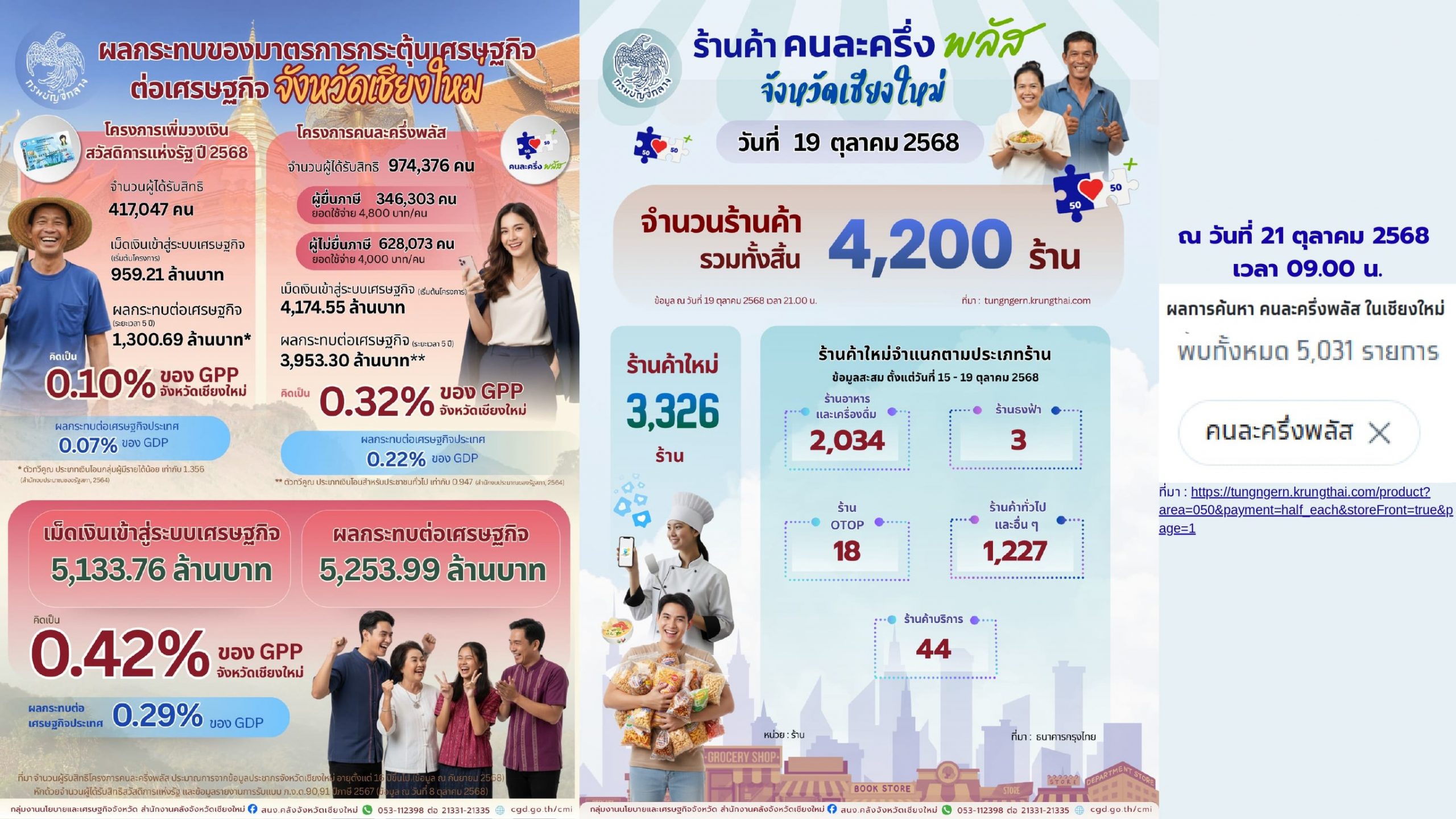 คลังเชียงใหม่เผยคนเชียงใหม่รับสิทธิ์คนละครึ่งพลัสกว่า 9 แสนคน บัตรสวัสดิการแห่งรัฐกว่า 4 แสนราย ร้านค้าลงทะเบียนร่วมกว่า 5,000 รายคาดกระตุ้นเศรษฐกิจใน