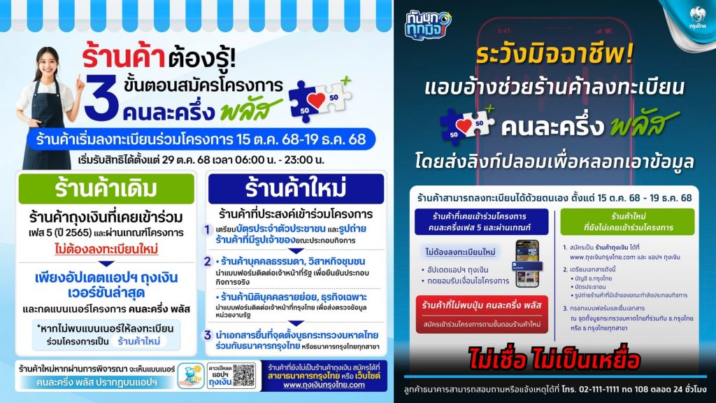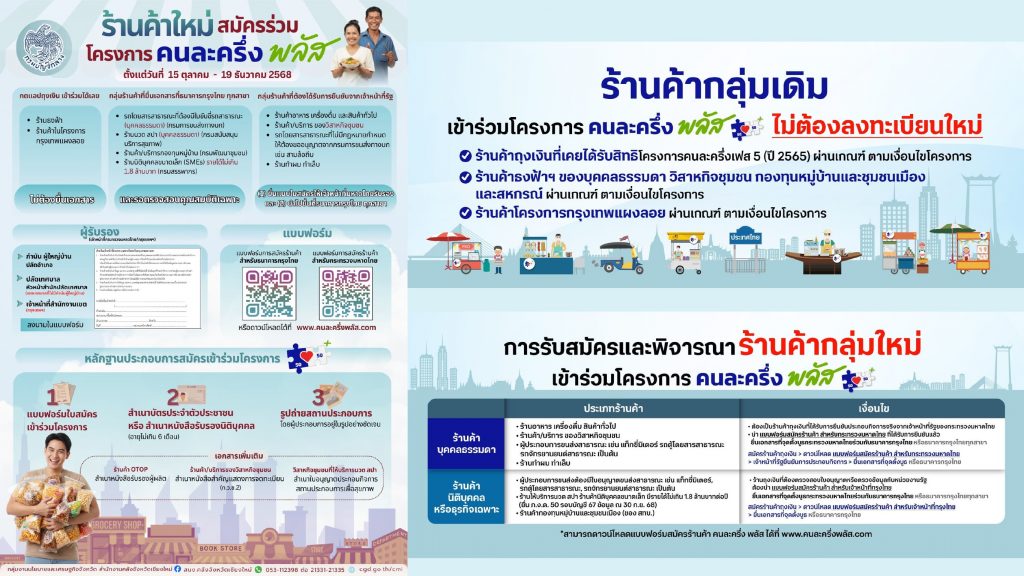 เชียงใหม่ 22 ต.ค. – นางปลื้มจิต สิงห์สุทธิจันทร์ คลังจังหวัดเชียงใหม่ เปิดเผยถึงการลงทะเบียนเข้าร่วมโครงการคนละครึ่งพลัสว่า บรรยากาศที่เชียงใหม่คึกคักทั้งผู้ลงทะเบียนใช้สิทธิ์และร้านค้า ซึ่งเกินความคาดหมายที่การเปิดให้ลงทะเบียนเพียงวันเดียวก็ครบเต็มจำนวน 20 ล้านทั้งประเทศถือเป็นโครงการสำคัญตามนโยบายของ นายอนุทิน ชาญวีรกูล นายกรัฐมนตรีและรัฐมนตรีว่าการกระทรวงมหาดไทย ในการกระตุ้นเศรษฐกิจของประเทศไทยในช่วงไตรมาสสุดท้ายของปี 2568 โดยรัฐบาลมีแผนเตรียมขยายโครงการเฟส 2 เร็วๆ นี้ สำหรับผู้ลงทะเบียนไม่ทัน แต่สำหรับผู้ประกอบการร้านค้าสามารถลงทะเบียนเข้าร่วมโครงการดังกล่าวได้จนถึงวันที่ 19 ธันวาคมนี้ ขณะนี้มีร้านค้าในจังหวัดเชียงใหม่สมัครเข้าร่วมโครงการแล้วกว่า 5,000 ราย ในส่วนของผู้ประกอบการรายย่อยสามารถลงทะเบียนได้ที่ธนาคารกรุงไทยทุกสาขาโดยต้องมีเจ้าหน้าที่ของกระทรวงมหาดไทย เช่น กำนัน ผู้ใหญ่บ้าน หรือท้องถิ่น เป็นผู้รับรองการประกอบกิจการ ซึ่งร้านค้าที่สามารถเข้าร่วมโครงการได้ต้องเป็นร้านค้าที่มีการซื้อขายสินค้าและบริการจริง ในช่วงเวลาที่กำหนด จากการลงทะเบียนร้านค้าพบว่าเป็นผู้ประกอบการร้านค้ารายใหม่กว่า 3,300 ร้าน