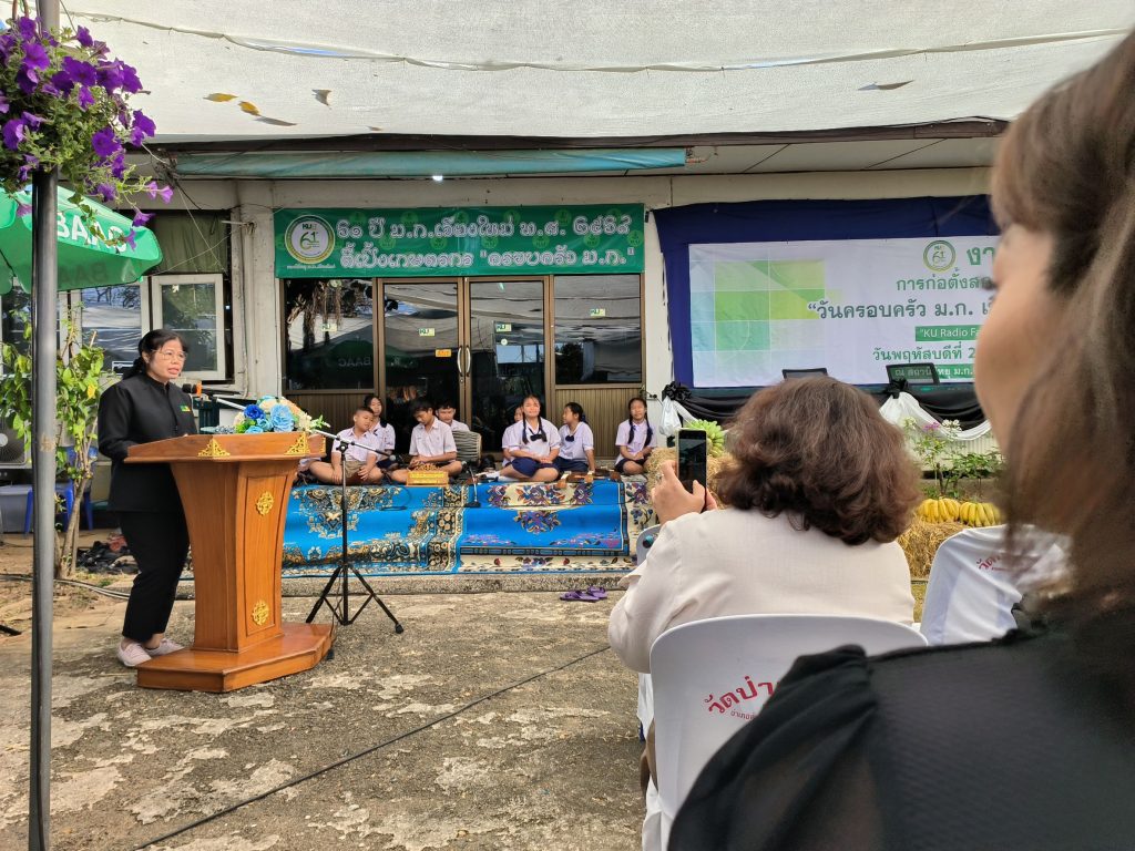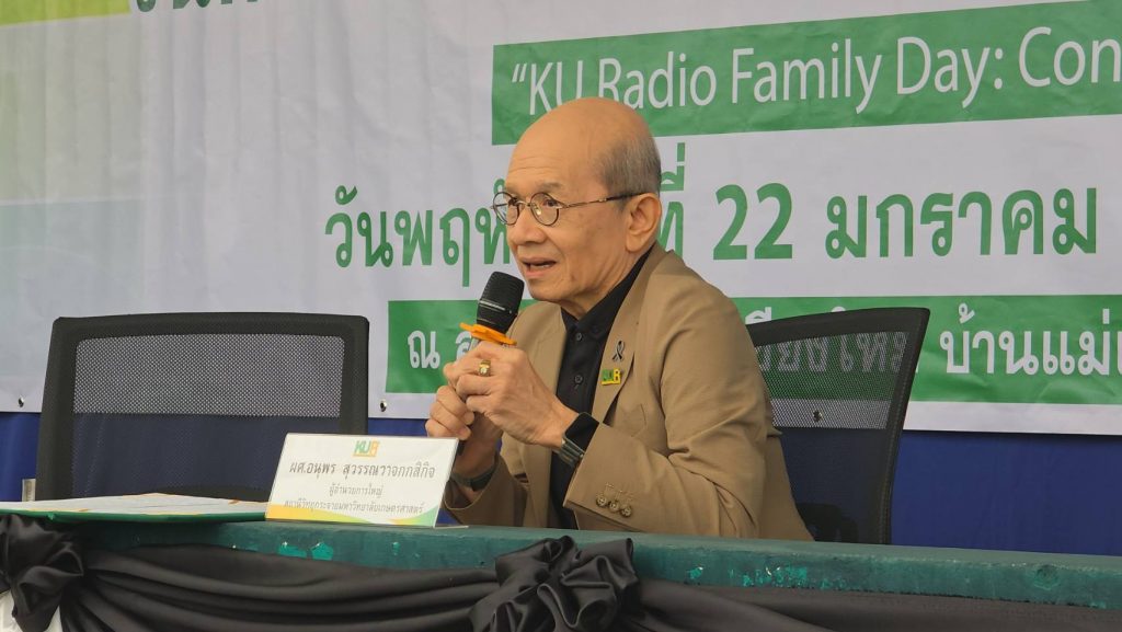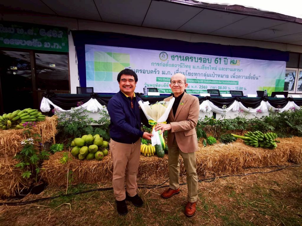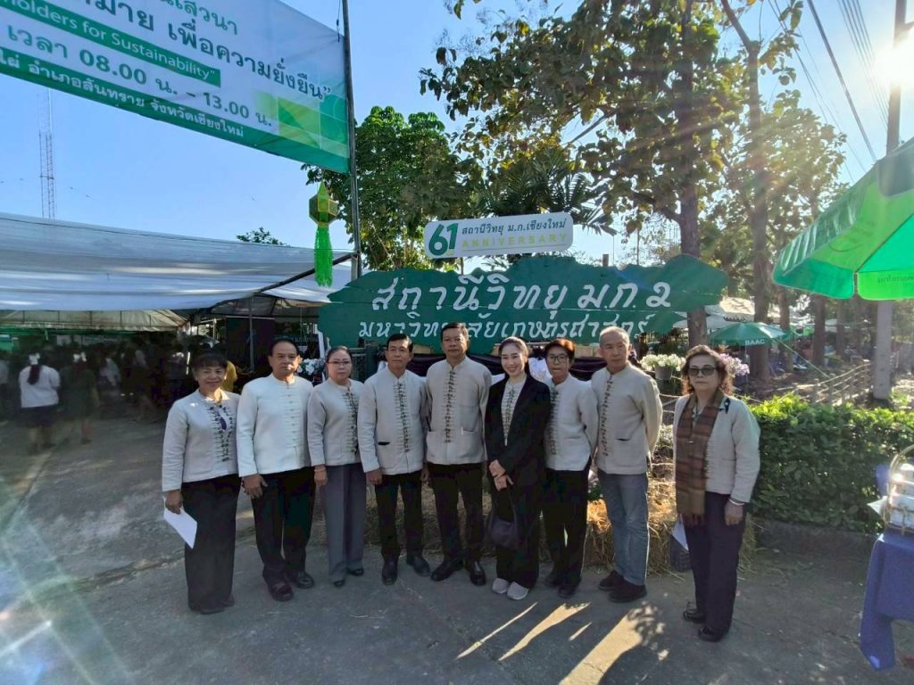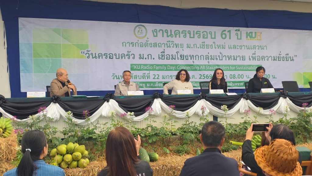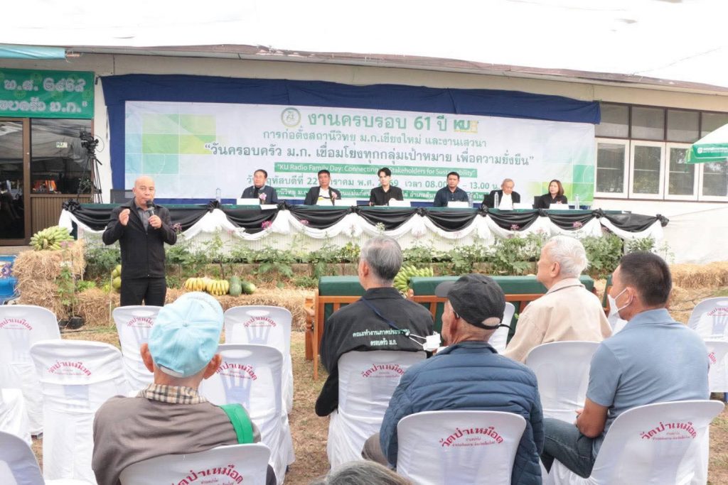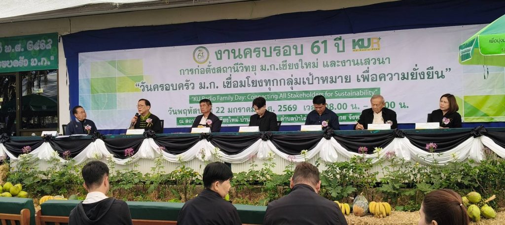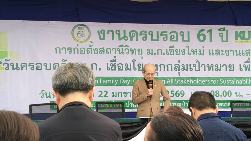 เชียงใหม่ 22 ม.ค.- ที่สถานีวิทยุมหาวิทยาลัยเกษตรศาสตร์จังหวัดเชียงใหม่(ม.ก.เชียงใหม่) ต.ป่าไผ่ อ.สันทราย จ.เชียงใหม่ ผศ.อนุพร สุวรรณวาจกกสิกิจ ผู้อำนวยการใหญ่สถานีวิทยุ ม.ก.เป็นประธานเปิดงานครบรอบ 61 ปีการก่อตั้งสถานีวิทยุ ม.ก.เชียงใหม่ภายใต้งาน “วันครอบครัว ม.ก. เชื่อมโยงทุกกลุ่มเป้าหมาย เพื่อความยั่งยืน” หรือ “KU Radio Family Day: Connecting All Stakeholders for Sustainability” เพื่อตอกย้ำบทบาทการเป็นสื่อกลางศาสตร์แห่งแผ่นดินที่รับใช้สังคมมาอย่างยาวนาน