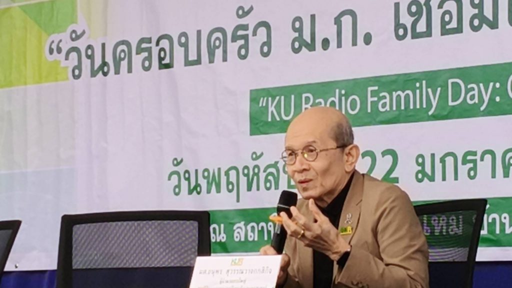 จากนั้นป็นการเสวนาในมุมมองของ “ครอบครัว ม.ก.” นำโดยผู้ทรงคุณวุฒิหลากหลายสาขา ได้แก่ ผศ.พาวิน มะโนชัย จากคณะทำงานภาคประชาชนสถานีวิทยุ ม.ก. เชียงใหม่, นายเทิดพัฒน์ พัฒนศิษฎางกูร นายกสมาคมนิสิตเก่ามหาวิทยาลัยเกษตรศาสตร์ ภาคเหนือ, นายแพทย์นิธิรัตน์ บุญตานนท์ ผู้อำนวยการศูนย์อนามัยที่ 1 เชียงใหม่, นางสาวภัสสราภรณ์ วิริยา รองนายกเทศมนตรีตำบลป่าไผ่, พ่อครูศักดิ์ศรี สุปินตา ประธานสาขาสมาคมสภาผู้สูงอายุแห่งประเทศไทยฯ ประจำจังหวัดเชียงใหม่ และ นายอลงกต เรียนยอย ผู้อำนวยการโรงเรียนป่าจี้วังแดงวิทยา ดำเนินรายการโดย นายถวิล สุวรรณมณี บรรณาธิการข่าวเกษตรอาวุโส