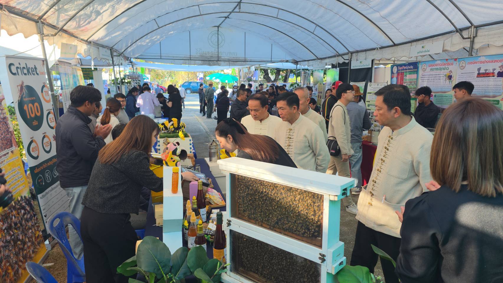 นอกจากนี้ภายในงานมีการจัดแสดงนิทรรศการผลงานวิจัยที่ใช้ได้จริงจากมหาวิทยาลัยเกษตรศาสตร์และหน่วยงานพันธมิตร อาทิ นวัตกรรมเกษตรแม่นยำ การแปรรูปสินค้าเกษตรเพื่อเพิ่มมูลค่า และการสาธิตเทคโนโลยีลดโลกร้อน รวมถึงเวทีเสวนาวิชาการที่เชิญผู้เชี่ยวชาญและปราชญ์ชาวบ้านมาร่วมแบ่งปันประสบการณ์ในหัวข้อ การสร้างความยั่งยืนบนวิถีพอเพียง นอกจากนี้ยังมีการออกร้านจำหน่ายสินค้าคุณภาพจาก “ตลาดนัดสีเขียวครอบครัว ม.ก.” ซึ่งเป็นผลผลิตโดยตรงจากเครือข่ายผู้ฟังและเกษตรกรในพื้นที่