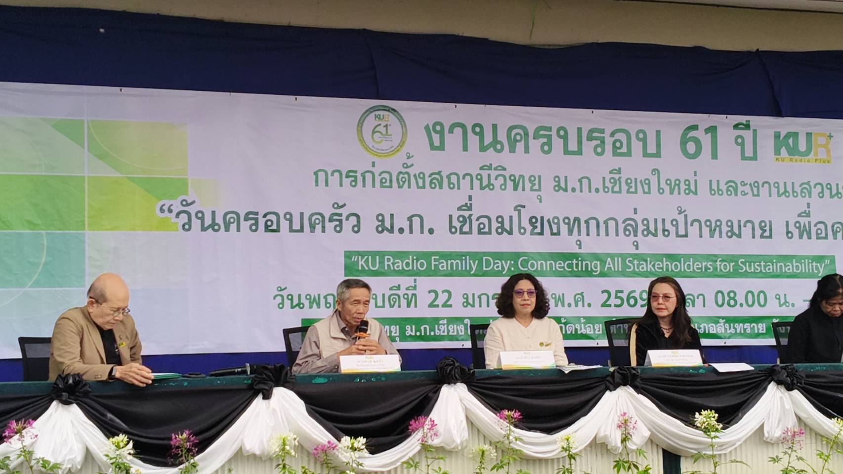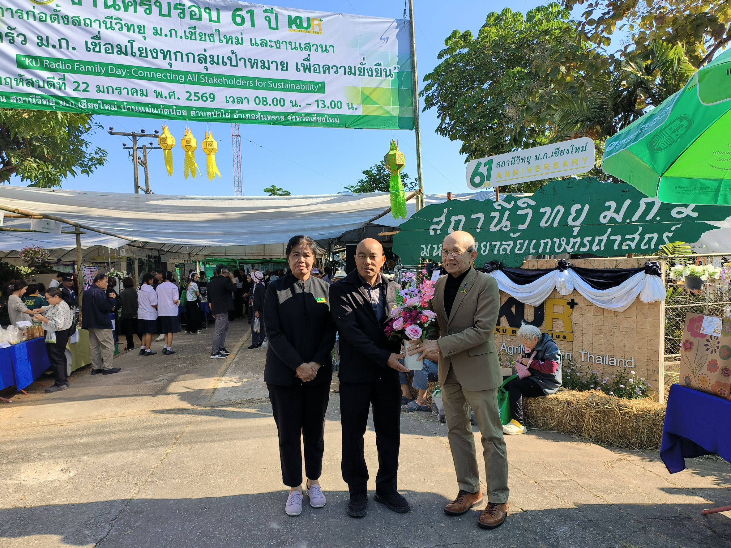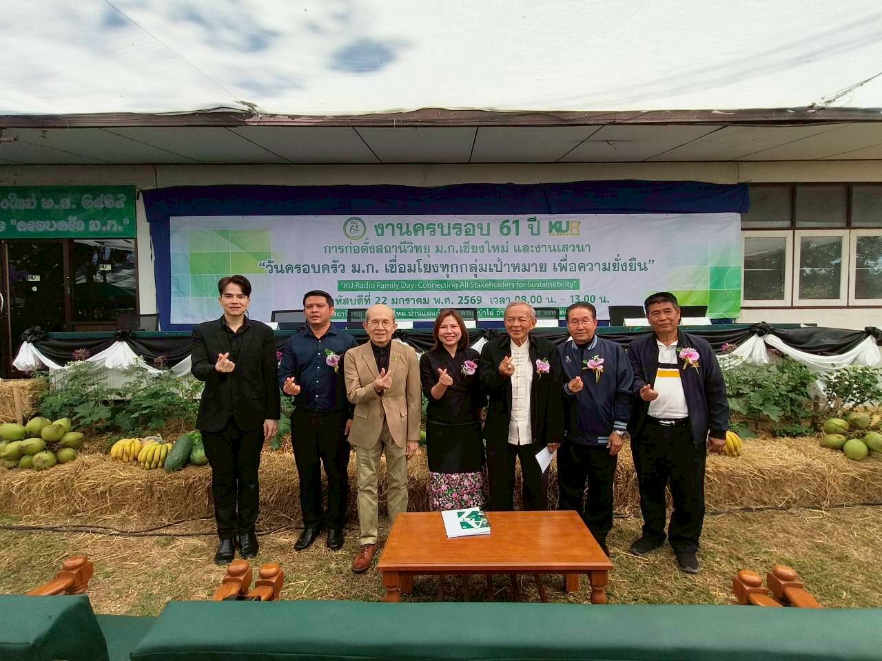 เชียงใหม่ 22 ม.ค.- ที่สถานีวิทยุมหาวิทยาลัยเกษตรศาสตร์จังหวัดเชียงใหม่(ม.ก.เชียงใหม่) ต.ป่าไผ่ อ.สันทราย จ.เชียงใหม่ ผศ.อนุพร สุวรรณวาจกกสิกิจ ผู้อำนวยการใหญ่สถานีวิทยุ ม.ก.เป็นประธานเปิดงานครบรอบ 61 ปีการก่อตั้งสถานีวิทยุ ม.ก.เชียงใหม่ภายใต้งาน “วันครอบครัว ม.ก. เชื่อมโยงทุกกลุ่มเป้าหมาย เพื่อความยั่งยืน” หรือ “KU Radio Family Day: Connecting All Stakeholders for Sustainability” เพื่อตอกย้ำบทบาทการเป็นสื่อกลางศาสตร์แห่งแผ่นดินที่รับใช้สังคมมาอย่างยาวนาน