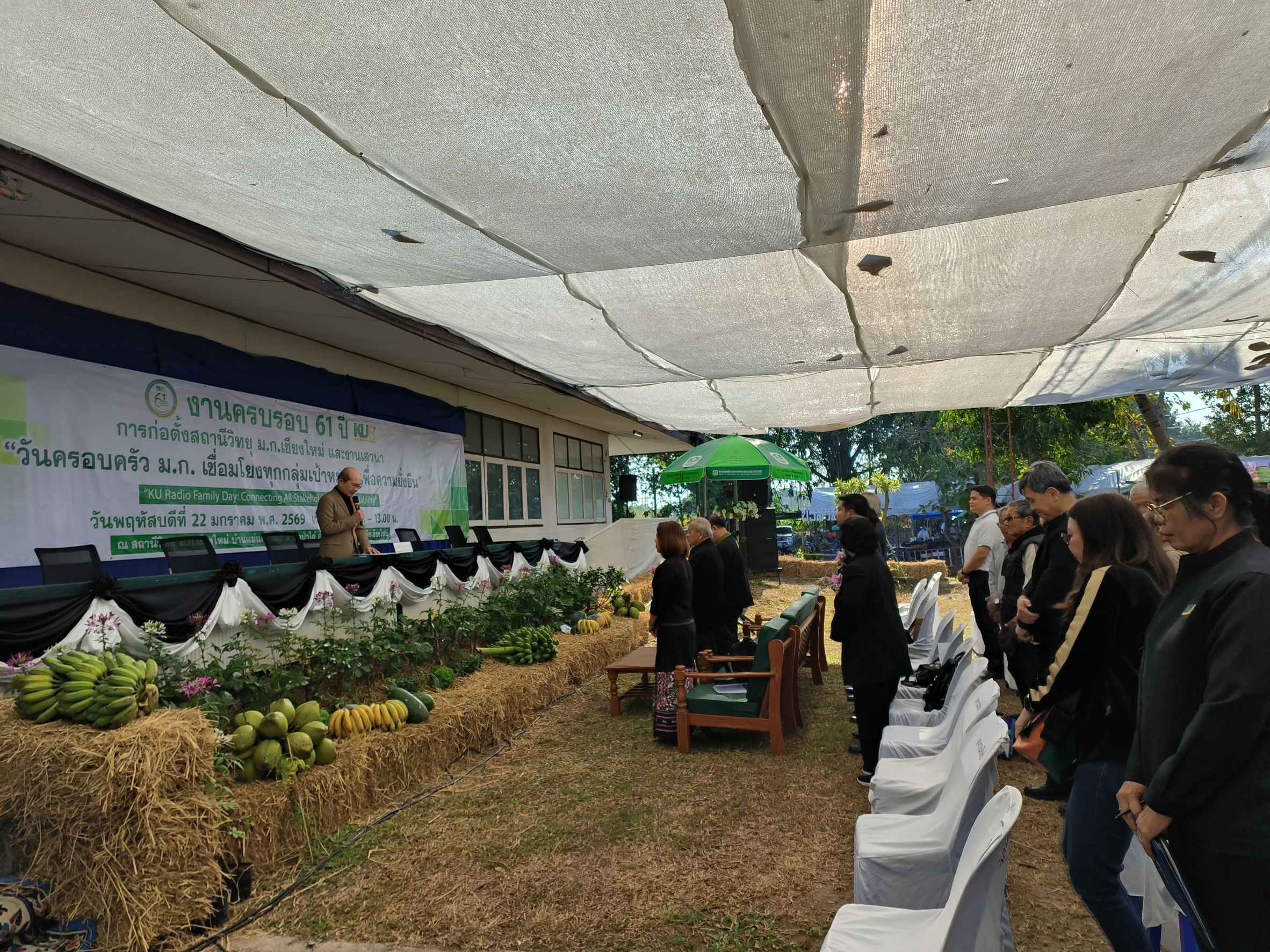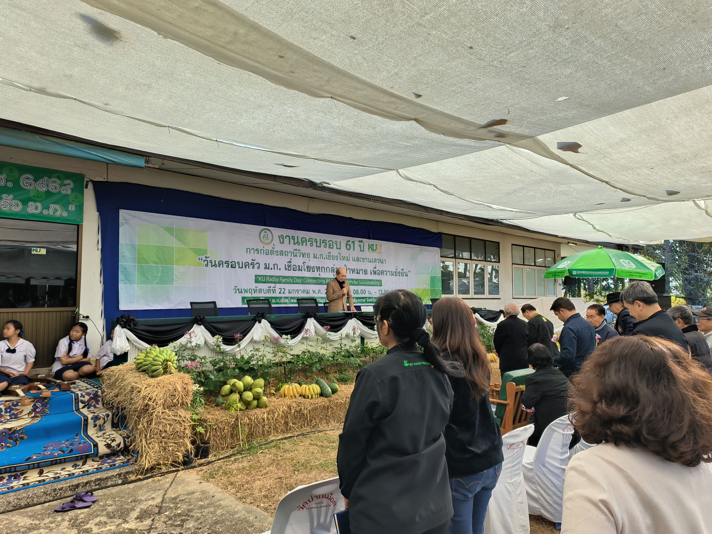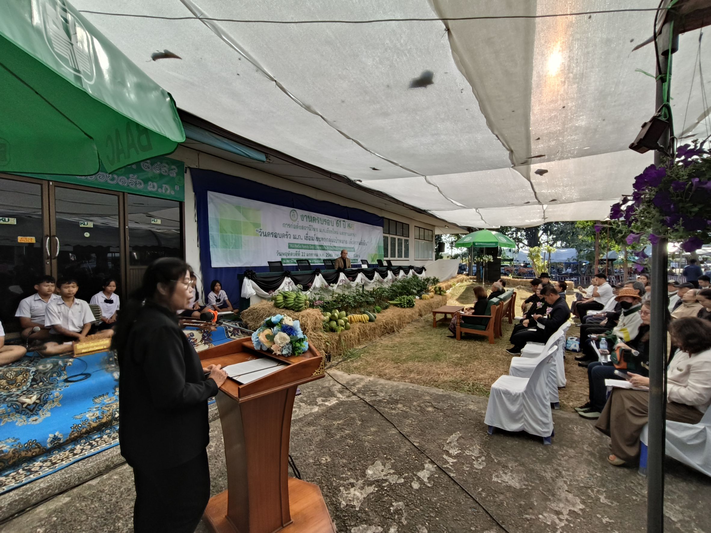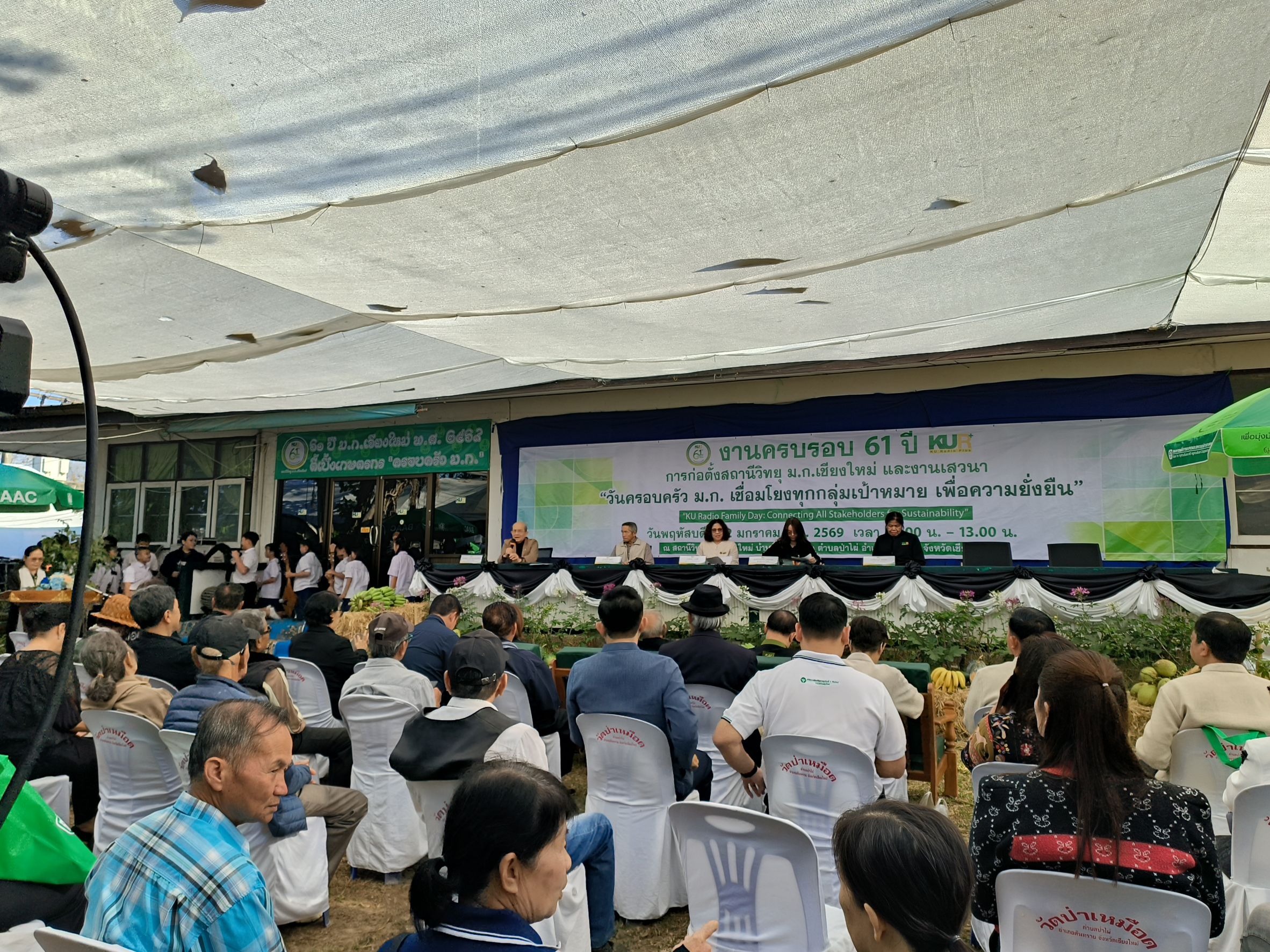 เชียงใหม่ 22 ม.ค.- ที่สถานีวิทยุมหาวิทยาลัยเกษตรศาสตร์จังหวัดเชียงใหม่(ม.ก.เชียงใหม่) ต.ป่าไผ่ อ.สันทราย จ.เชียงใหม่ ผศ.อนุพร สุวรรณวาจกกสิกิจ ผู้อำนวยการใหญ่สถานีวิทยุ ม.ก.เป็นประธานเปิดงานครบรอบ 61 ปีการก่อตั้งสถานีวิทยุ ม.ก.เชียงใหม่ภายใต้งาน “วันครอบครัว ม.ก. เชื่อมโยงทุกกลุ่มเป้าหมาย เพื่อความยั่งยืน” หรือ “KU Radio Family Day: Connecting All Stakeholders for Sustainability” เพื่อตอกย้ำบทบาทการเป็นสื่อกลางศาสตร์แห่งแผ่นดินที่รับใช้สังคมมาอย่างยาวนาน