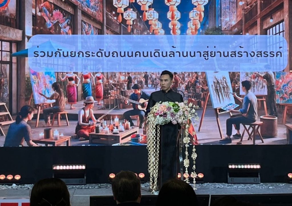 ขณะที่นายขจรเดช อภิชาติตรากุล ผู้อำนวยการภูมิภาคภาคเหนือ การท่องเที่ยวแห่งประเทศไทย (ททท.) กล่าวถึงบทบาทของ “ถนนคนเดิน”ในฐานะกลไกสำคัญในการขับเคลื่อนการท่องเที่ยวเชิงสร้างสรรค์ว่า เวทีนี้ได้สรุปองค์ความรู้จากการดำเนินงานถนนคนเดินใน 3 พื้นที่นำร่อง ได้แก่ ถนนคนเดินท่าแพ ถนนคนเดินสันกำแพง จังหวัดเชียงใหม่ และชุมชนบ้านธิ จังหวัดลำพูน ในฐานะพื้นที่พัฒนาผลิตภัณฑ์สร้างสรรค์เชื่อมโยงถนนคนเดิน เพื่อส่งเสริมบทบาทของถนนคนเดินในฐานะพื้นที่สร้างสรรค์ของเมืองที่เชื่อมโยงการท่องเที่ยว วิถีชีวิตและเศรษฐกิจฐานราก พร้อมทั้งแสดงพลังความร่วมมือจากทุกภาคส่วน ในการผลักดันถนนคนเดินให้เป็น ‘ต้นแบบการพัฒนาเชิงพื้นที่ด้วยเศรษฐกิจสร้างสรรค์‘ ที่ตอบโจทย์การท่องเที่ยวยุคใหม่อย่างแท้จริงและจับต้องได้