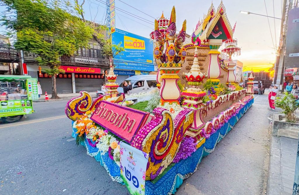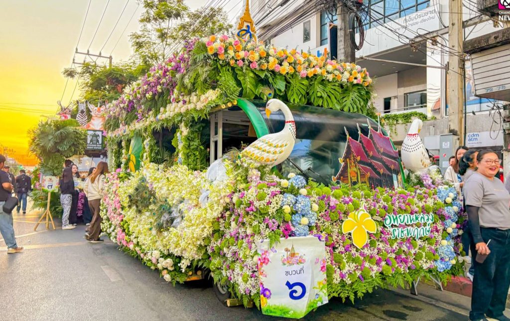 เชียงใหม่ 14 ก.พ. – ที่บริเวณเชิงสะพานนวรัฐ ด้านหน้าจวนผู้ว่าราชการจังหวัดเชียงใหม่ อำเภอเมืองเชียงใหม่ นายชัชวาลย์ ปัญญา รองผู้ว่าราชการจังหวัดเชียงใหม่เป็นประธานในการเปิดกิจกรรมประกวดขบวนรถบุปผชาติชิงถ้วยพระราชทานสมเด็จพระขนิษฐาธิราชเจ้าฯ ในงานมหกรรมไม้ดอกไม้ประดับ จังหวัดเชียงใหม่ ครั้งที่ 49 ประจำปี 2569 ซึ่งจัดขึ้นระหว่างวันที่ 13–15 กุมภาพันธ์ 2569 ภายใต้แนวคิด “บุปผาราชินีก้องเกริกฟ้า ล้ำเลอค่านครพิงค์” ท่ามกลางนักท่องเที่ยวที่คอยเก็บภาพบรรยากาศความสวยงามอย่างหนึ่งแน่น