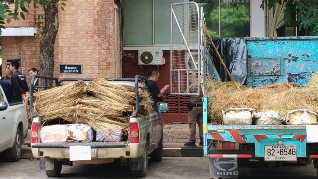 โดยคดีแรกเมื่อวันที่ 13-14 พ.ย.2568 ตำรวจภูธรจังหวัดเชียงราย ได้รับแจ้งเบาะแสจากพลเมืองดีว่า พบเห็นรถยนต์กระบะ ยี่ห้อมาสด้า สีน้ำตาล บรรทุกหญ้าคาเต็มกระบะท้ายรถ จอดทิ้งไว้อยู่ข้างเมรุเผา ในฌาปนสถานบ้านปงเคียน ต.ดงมหาวัน อ.เวียงเชียงรุ้ง จ.เชียงราย โดยจอดไว้เป็นเวลานานผิดสังเกตจึงได้เข้าทำการตรวจสอบรถ พบยาบ้า จำนวน 24 กระสอบ รวมประมาณ 6 ล้านเม็ด อำพรางอยู่