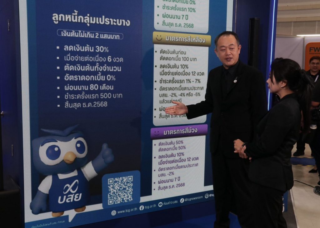 ในงานครั้งนี้ยังมุ่งให้ความช่วยเหลือลูกหนี้ที่ บสย. จ่ายเคลม ในคอนเซ็ปต์ “เปิดใจ ปิดหนี้” ผ่านมาตรการ “บสย. พร้อมช่วย” จุดเด่นคือ ยืดหนี้ยาวสูงสุด 7 ปี ช่วย SMEs “ผ่อนน้อย เบาแรง” “ตัดเงินต้น ก่อนตัดดอก” ดอกเบี้ย 0% ช่วยให้ลูกหนี้อยู่รอด อยู่ได้ และกลับไปเป็นลูกหนี้ปกติได้ง่ายขึ้น พิเศษ! สำหรับลูกหนี้ที่เข้ามา “ปลดหนี้” ในงานนี้ รับโปรโมชัน “ลดต้นสูงถึง 30%” พร้อม “ปลดดอก” เพื่อต่อลมหายใจให้ SMEs สามารถกลับมาเดินหน้าต่อได้