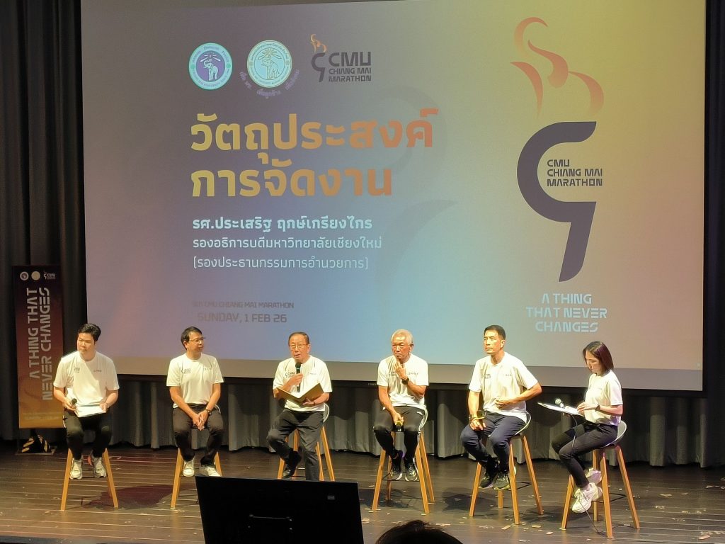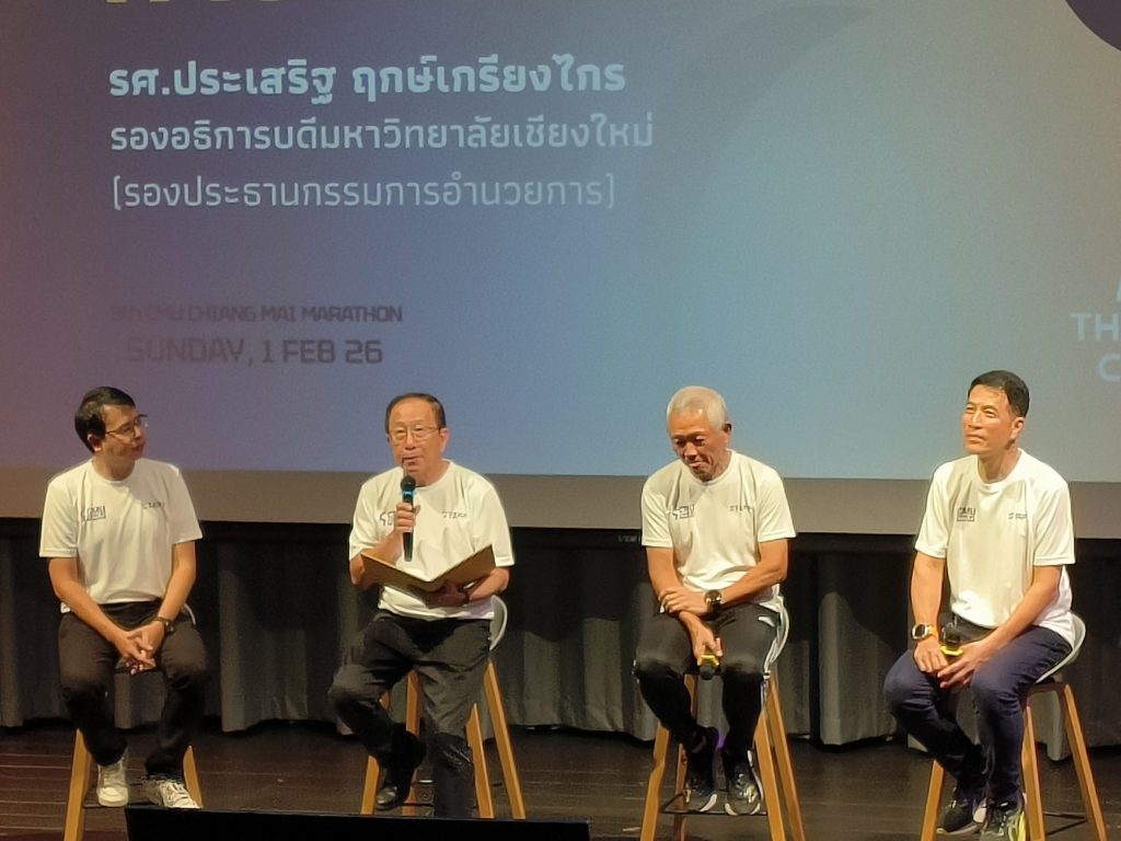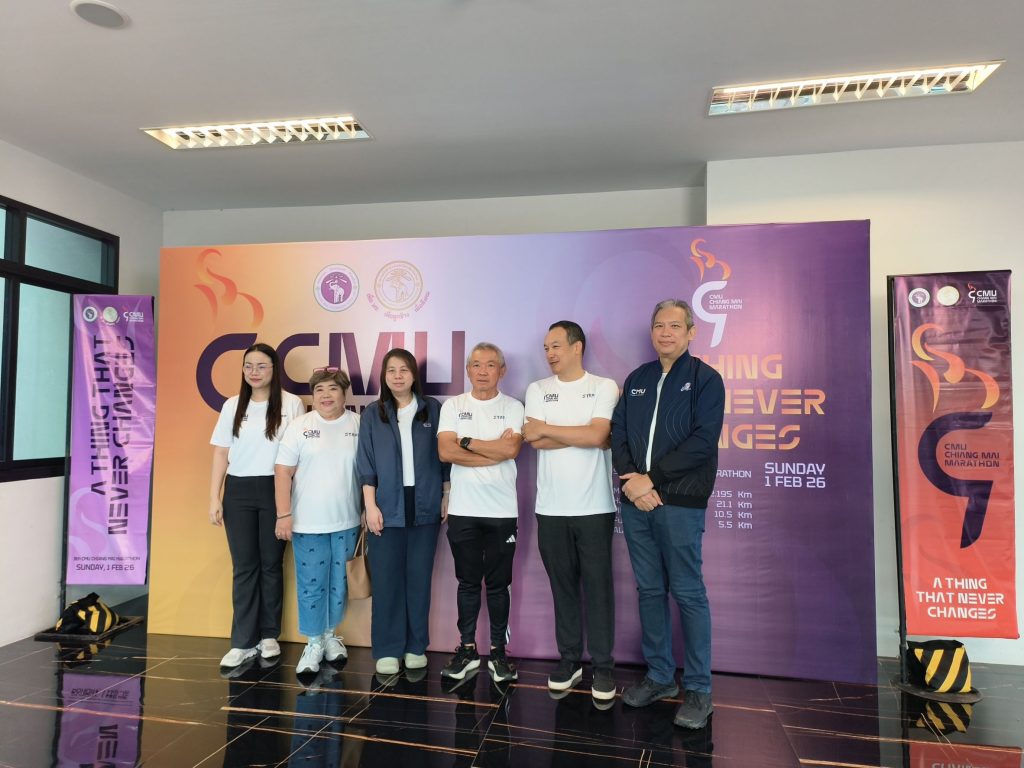 เชียงใหม่ 16 ต.ค.- ที่อาคาร cic คณะการสื่อสารมวลชน มหาวิทยาลัยเชียงใหม่ มหาวิทยาลัยเชียงใหม่ร่วมกับสมาคมศิษย์เก่าฯ จัดแถลงความพร้อมกำหนดจัดการงานวิ่งการกุศลมหาวิทยาลัยเชียงใหม่ – เชียงใหม่มาราธอน ครั้งที่ 9 (CMU – Chiang Mai Marathon 2026) ชิงรางวัลถ้วยพระราชทานสมเด็จพระกนิษฐาธิราชเจ้า กรมสมเด็จพระเทพรัตนราชสุดาฯ สยามบรมราชกุมารี ในวันอาทิตย์ที่ 1 กุมภาพันธ์ 2569 ภายใต้ธีม “A thing that never changes” วิ่งเพื่อสุขภาพ วิ่งเพื่อสังคมและวิ่งเพื่อแบ่งปัน เตรียมพร้อมต้อนรับผู้ที่รักสุขภาพและหลงใหลในการวิ่งทุกท่าน ร่วมสร้างความทรงจำและประสบการณ์อันล้ำค่าไปด้วยกัน ณ มหาวิทยาลัยเชียงใหม่ โดยมี รศ.ประเสริฐ ฤกษ์เกรียงไกร รองอธิการบดีมหาวิทยาลัยเชียงใหม่ รองประธานกรรมการอำนวยการกล่าวถึง ธีมงาน ประเภทนักวิ่ง ระยะทางการแข่งขันและสิทธิประโยชน์นักวิ่ง ที่ปีนี้ก็ยังคงความยิ่งใหญ่เช่นเดิม