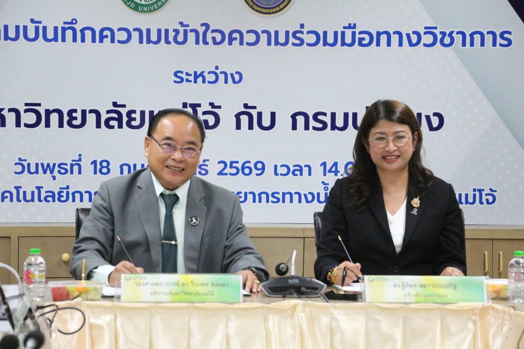 เชียงใหม่ 18 ก.พ. – มหาวิทยาลัยแม่โจ้ โดยคณะเทคโนโลยีการประมงและทรัพยากรทางน้ำ จัดพิธีลงนามบันทึกความตกลงความร่วมมือทางวิชาการ (MOA) ร่วมกับกรมประมง เพื่อผนึกกำลังสร้างเครือข่ายความร่วมมือในการพัฒนาองค์ความรู้ งานวิจัย และบุคลากรด้านการประมงของประเทศ โดยมี รศ.ดร.วีระพล ทองมา อธิการบดีมหาวิทยาลัยแม่โจ้ และ ดร.ฐิติพร หลาวประเสริฐ อธิบดีกรมประมง เป็นผู้แทนลงนาม ทั้งสองฝ่าย ทั้งนี้มีผู้บริหารระดับสูงของทั้งสองหน่วยงานเข้าร่วมเป็นสักขีพยาน ณ คณะเทคโนโลยีการประมงและทรัพยากรทางน้ำ มหาวิทยาลัยแม่โจ้ จังหวัดเชียงใหม่