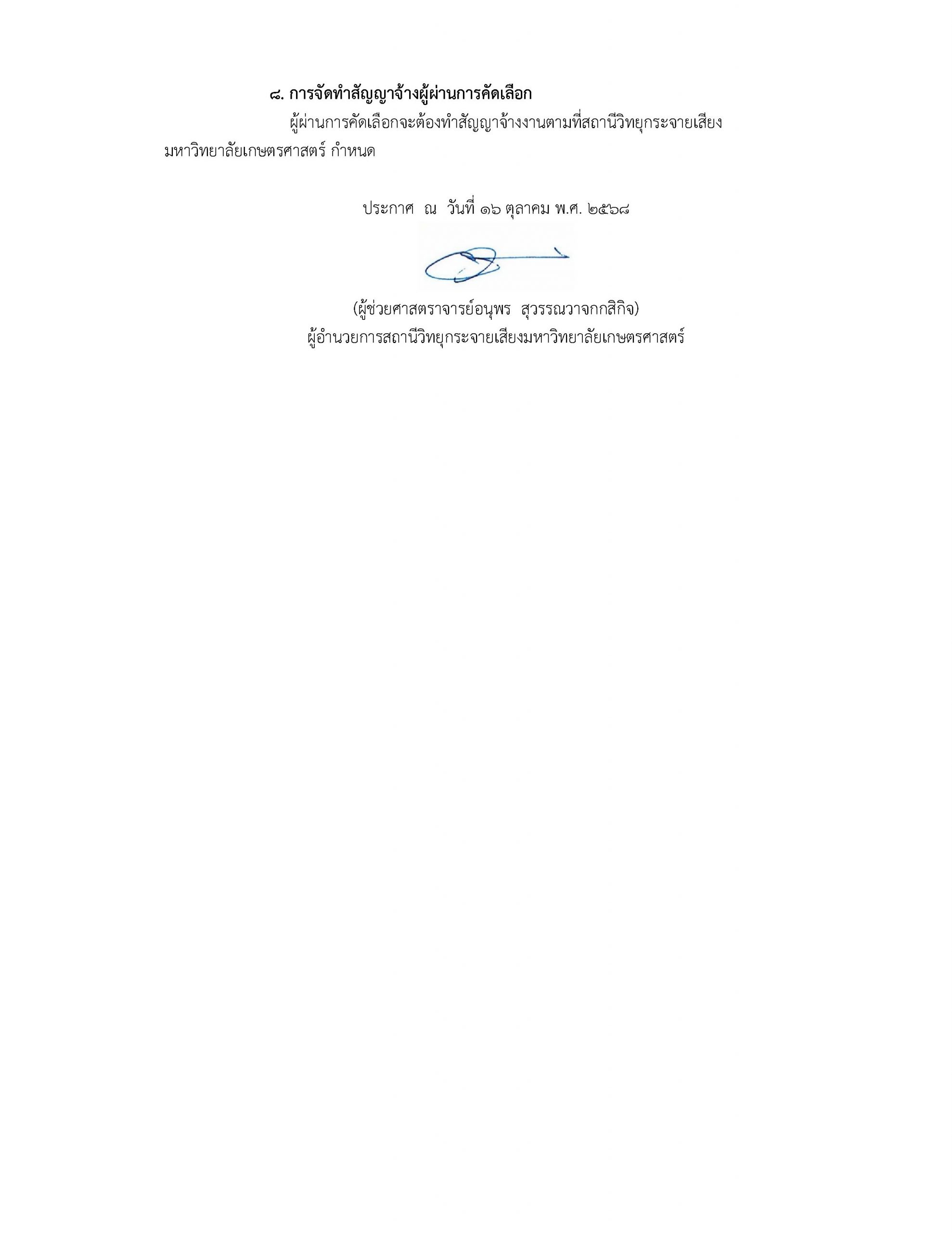 สถานีวิทยุกระจายเสียงมหาวิทยาลัยเกษตรศาสตร์ จังหวัดเชียงใหม่ (สถานีวิทยุ ม.ก.เชียงใหม่) รับสมัครบุคคลเพื่อคัดเลือกเป็น ลูกจ้างชั่วคราว