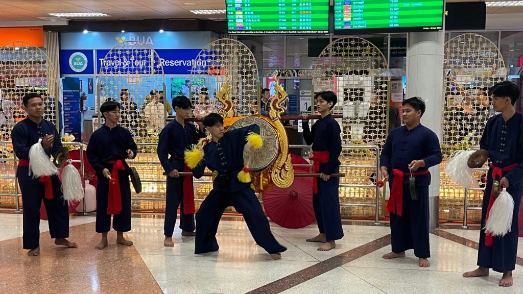 เชียงใหม่ 10 เม.ย.- ที่ท่าอากาศยานเชียงใหม่ มีการจัดกิจกรรมต้อนรับผู้โดยสารเนื่องในเทศกาลสงกรานต์ เพื่อสืบสานประเพณีปีใหม่ไทยและสร้างบรรยากาศที่ดีแก่ผู้เดินทาง โดยมี นายการันต์ ธนกุลจีรพัฒน์ ผู้อำนวยการท่าอากาศยานเชียงใหม่ นำคณะผู้บริหาร พนักงาน พร้อมด้วยผู้แทนสายการบินและหน่วยงานที่เกี่ยวข้อง ร่วมมอบของที่ระลึก (ปืนฉีดน้ำ) และจัดการแสดงศิลปวัฒนธรรมท้องถิ่น “กลองสะบัดชัย” จากวิทยาลัยนาฏศิลป์เชียงใหม่ พร้อมกันนี้ ได้มีการประดับตกแต่งพื้นที่ภายในอาคารผู้โดยสาร เพื่อสร้างบรรยากาศเทศกาลสงกรานต์ในรูปแบบล้านนา โดยจัดบริการจุดสรงน้ำพระเพื่อความเป็นสิริมงคลตามปีเกิด ทำบุญไม้ค้ำสะหลี รวมถึงมุมถ่ายภาพและองค์ประกอบทางศิลปวัฒนธรรมท้องถิ่นล้านนา เพื่อให้ผู้โดยสารและนักท่องเที่ยวได้สัมผัสกลิ่นอายปีใหม่ของไทยอย่างเรียบง่ายและอบอุ่น ท่ามกลางบรรยากาศแบบบ้านนาตั้งแต่ก้าวแรกที่เดินทางมาถึงจังหวัดเชียงใหม่ สร้างความประทับใจแก่นักท่องเที่ยวโดยเฉพาะชาวต่างชาติ