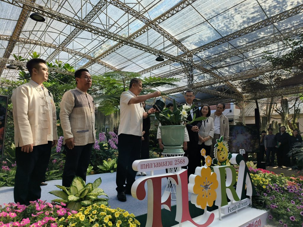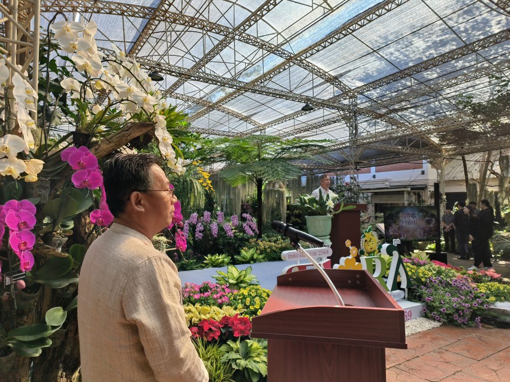 เชียงใหม่ 2 ธ.ค.- ที่เรือนกล้วยไม้ในอุทยานหลวงราชพฤกษ์ จ.เชียงใหม่ นายชวลิต ชูขจร ประธานกรรมการสถาบันวิจัยและพัฒนาพื้นที่สูง เป็นประธานเปิดงาน เทศกาลชมสวน (Flora Festival 2025) ภายใต้แนวคิด “ธรรมชาติแห่งอนาคต” (Bloom for the Future) โดยมีนายวิรัตน์ ปราบทุกข์ ผู้อำนวยการสถาบันวิจัยและพัฒนาพื้นที่สูง กล่าวรายงานถึงวัตถุประสงค์ในการจัดงาน โดยมีผู้บริหาร สวพส. หน่วยงานที่เกี่ยวข้องร่วมพิธี