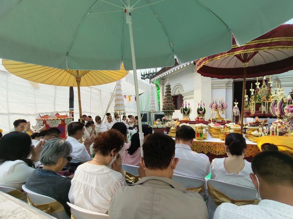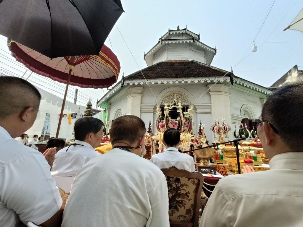 ในพิธีบวงสรวง อ.วารินทร์ ได้นำทุกส่วนน้อมสักการะบูชาทำพิธีพร้อมเจริญภาวนาเพื่อให้อานิสงส์ผลบุญดลให้ชาวเมืองเชียงใหม่และคนไทยอยู่เย็นเป็นสุข ผ่านพ้นทุกข์ภัยอันตราย วิกฤตปัญหาต่างๆ ให้ผ่านพ้นและคลี่คลายโดยเร็ว ในพิธีได้รับความเมตตาจากพระมหาเถราจารย์จากวัดมงคลนามในเมืองเชียงใหม่ กลุ่มทักษาเมือง จำนวน 8 รูป เพื่อเจริญพระพุทธมนต์ บทอุปปาตะสันติกถาฯ และบทพระมหาสันติงหลวงฯ ถวายเป็นพระราชกุศลแด่องค์พระมหากษัตริย์ในพระบรมราชจักรีวงศ์ทุกพระองค์เนื่องในวันสำคัญ วันจักรี ในปีนี้