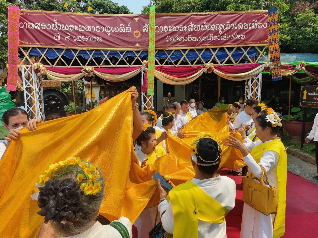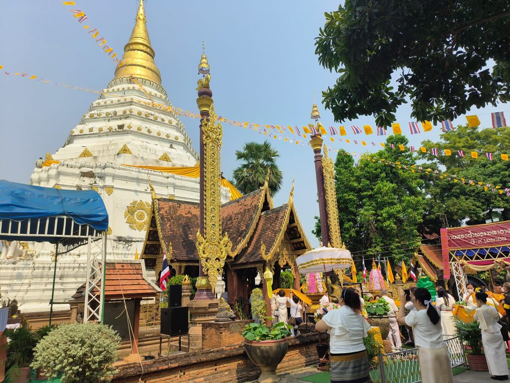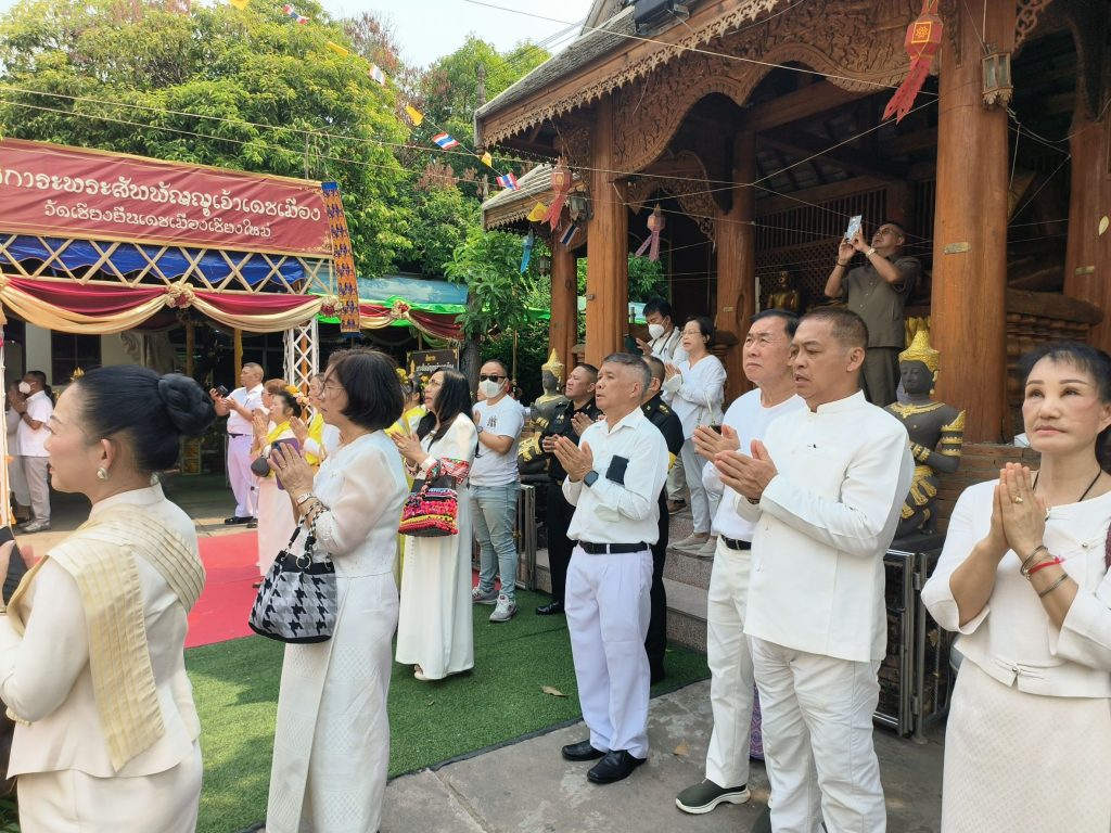 เชียงใหม่ 6 เม.ย.- ที่บริเวณด้านหน้าพระมหาธาตุเจดีย์ทรงแปดเหลี่ยม วัดเชียงยืน เดชเมืองเชียงใหม่ อำเภอเมือง จังหวัดเชียงใหม่ อาจาร์ยวารินทร์ บัววิรัตน์เลิศ ประธานมูลนิธิอาจารย์วารินทร์ บัววิรัตน์เลิศ มูลนิธิข่วงพระเจ้าล้านนาประกอบพิธีบวงสรวงเทพยดา อารักษ์ และสิ่งศักดิ์สิทธิ์ ตามคติความเชื่อของพิธีกรรมล้านนา เพื่อความเป็นสิริมงคลและความร่มเย็นเป็นสุขแก่ชุมชนและบ้านเมือง โดยมีอาจารย์ปรีชา บัววิรัตน์เลิศ อดีตสมาชิกวุฒิสภา ว่าที่ร้อยตรีอาทิตย์ เรืองวุฒิ ข้าราชการบำนาญอดีตศึกษาธิการจังหวัดเชียงใหม่ จ่าจังหวัดเชียงใหม่ ส่วนราชการ ทหาร ตำรวจ ผู้ทรงคุณวุฒิ นักธุรกิจ คณะกรรมการวัดและผู้เกี่ยวข้องเข้าร่วมพิธี พร้อมร่วมกันทำพิธีอัญเชิญผ้าห่มองค์พระธาตุเพืีอทำพิธีสรงน้ำพระธาตุ ก่อนที่ในภาคค่ำวันเดียวกันตั้งแต่เวลา 17.00 น. วัดเชียงยืนจัดพิธีสวดมนต์บท “อุปปาตะสันติ” หรือ “มหาสันติงหลวง (ฉบับแปล)” ซึ่งเป็นบทสวดมนต์โบราณสำคัญในพระพุทธศาสนา ทั้งยังเป็นการสวดฉบับแปลเป็นไทย โดยพระสงฆ์ – สามเณร และประชาชนทั่วไปที่ไปร่วมพิธีทั้งหมดที่ได้สวดพร้อมกัน อันแสดงออกถึงความสามัคคีและความจงรักภักดีเป็นที่ตั้ง ส่งผลบังเกิดเป็นอานุภาพแห่งพระปริตรธรรมตามที่ท่านจารึกไว้ในคัมภีร์อีกด้วย ที่สำคัญการจัดพิธีในวันนี้เป็นครั้งแรกในจังหวัดเชียงใหม่อีกด้วย