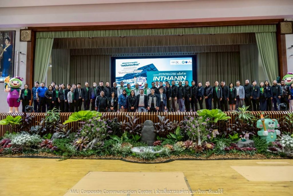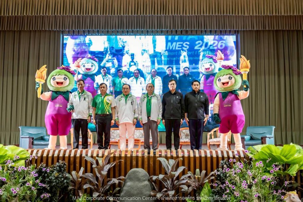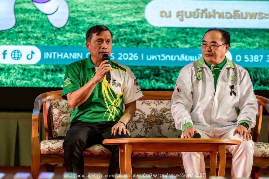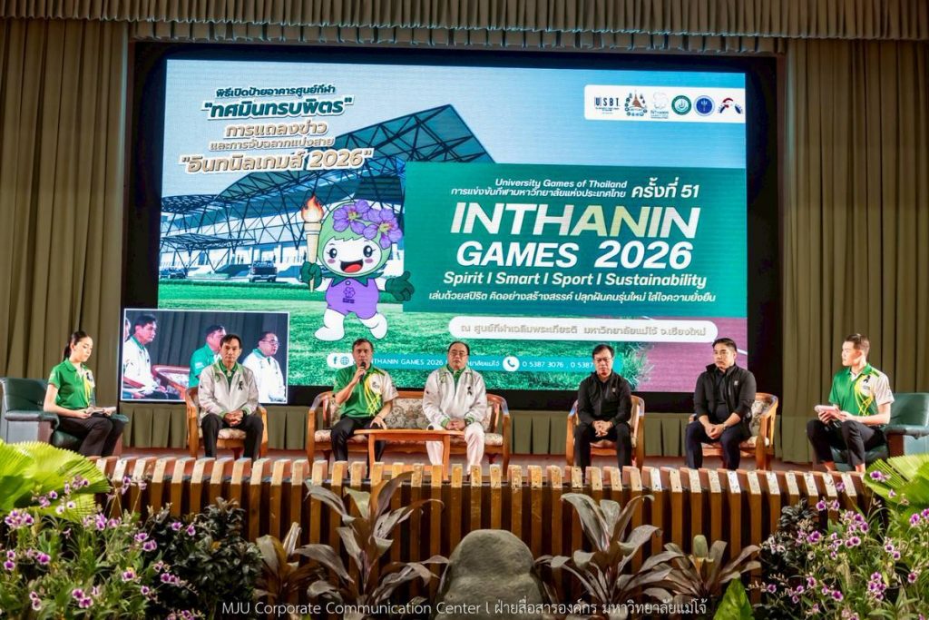 เชียงใหม่ 4 ธ.ค. – ที่มหาวิทยาลัยแม่โจ้ ได้มีการจัดพิธีแถลงข่าวและจับฉลากแบ่งสาย การแข่งขันกีฬามหาวิทยาลัยแห่งประเทศไทย ครั้งที่ 51 “อินทนิลเกมส์ 2026” พร้อมจัดพิธีบวงสรวงสักการะสิ่งศักดิ์สิทธิ์ เปิดป้ายอาคาร”ศูนย์กีฬาทศมินทรบพิตร”อาคารกีฬาประหยัดพลังงานแห่งแรกของภาคเหนือ ตั้งแต่เวลา 08.09 น. เป็นต้นไป โดยมี รศ.ดร.วีระพล ทองมา อธิการบดีมหาวิทยาลัยแม่โจ้ พร้อมด้วย รศ.ดร.ชูสิทธิ์ ประดับเพ็ชร์ ประธานกรรมการบริหารกีฬาแห่งประเทศไทย(กกมท.), รศ.ชาญชัย สุขสุวรรณ์ ประธานอนุกรรมการฝ่ายส่งเสริมกีฬาเพื่อความเป็นเลิศ คณะกรรมการบริหารกีฬามหาวิทยาลัยแห่งประเทศไทย และ ผศ.ดร.ประภากร ธาราฉาย รองอธิการบดี มหาวิทยาลัยแม่โจ้ เป็นผู้แถลงข่าว โอกาสเดียวกันนี้ นายชัยณรงค์ นันตาสาย ปลัดจังหวัดเชียงใหม่ ให้เกียรติกล่าวต้อนรับผู้เข้าร่วมงานครั้งนี้ ณ ศูนย์กีฬาเฉลิมพระเกียรติ มหาวิทยาลัยแม่โจ้ จังหวัดเชียงใหม่เมื่อต้นสัปดาห์ที่ผ่านมา