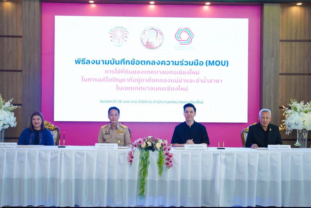 เทศบาลนครพิงค์จับมือหน่วยงานเกี่ยวข้องทำ MOU บ้านมั่นคงนำร่อง 39 หลัง เช่าที่ดินเทศบาล 30 ปี หวังแก้ปัญหารุกล้ำคลองแม่ข่า สร้าง “นครแห่งความสุข ภายใต้วิถีใหม่”City of Happiness : Transforming Our Lives Through a New Normal