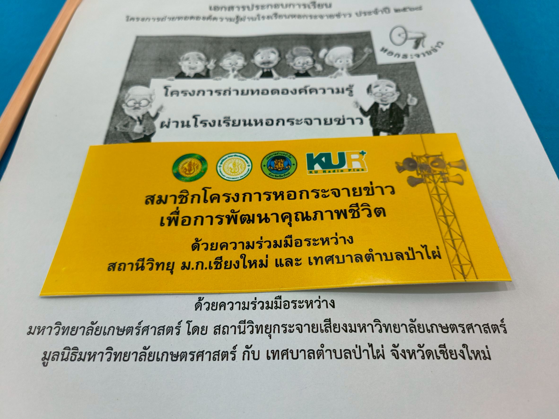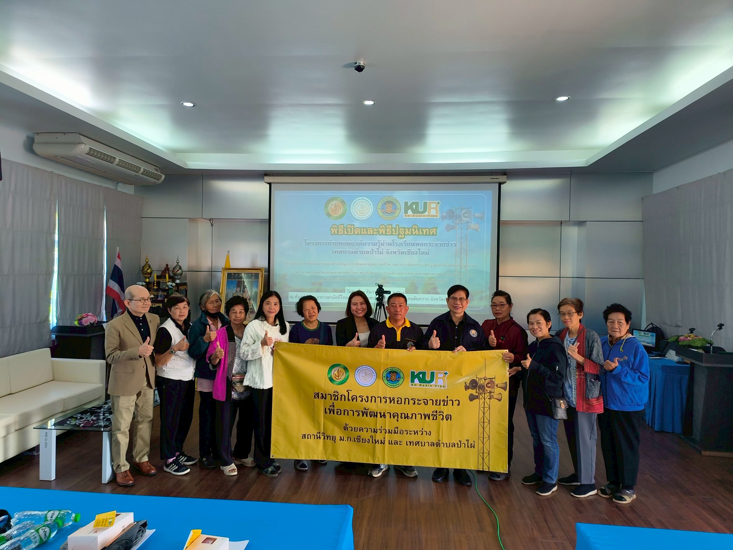 เชียงใหม่ 3 ธ.ค.- ที่ห้องประชุมเทศบาลตำบลป่าไผ่ อำเภอสันทราย จังหวัดเชียงใหม่ ผศ.อนุพร สุวรรณวาจกกสิกิจ ผู้อำนวยการใหญ่สถานีวิทยุกระจายเสียงมหาวิทยาลัยเกษตรศาสตร์ ในฐานะกรรมการบริหารและผู้จัดการมูลนิธิมหาวิทยาลัยเกษตรศาสตร์ พร้อมด้วย นายไชยยันต์ วิริยา นายกเทศมนตรีตำบลป่าไผ่ ร่วมกันเปิดโครงการถ่ายทอดองค์ความรู้ผ่านโรงเรียนหอกระจายข่าวภายใต้“โครงการถ่ายทอดองค์ความรู้ผ่านโรงเรียนหอกระจายข่าว เทศบาลตำบลป่าไผ่ จังหวัดเชียงใหม่” กับกลุ่มเป้าหมายใน 3 หมู่บ้านต้นแบบของตำบลป่าไผ่จำนวน 50 คน ซึ่งเป็นพื้นที่นำร่องแรกก่อนจะขยายผลไปยังพื้นที่อื่นๆ ทั้ง 4 ภูมิภาคต่อไป ทั้งนี้เพื่อขยายรูปแบบและพัฒนามาจากโครงการโรงเรียนผู้สูงอายุทางอากาศ เพื่อสร้างแรงจูงใจและกระตุ้นให้ประชาชนกลุ่มเป้าหมายตระหนักถึงความจำเป็นในการพัฒนาตนเอง การดูแล การพัฒนาคุณภาพชีวิต รวมถึงการส่งเสริมสุขภาพที่ดีของตนเองทั้งร่างกายและจิตใจ โดยมีนางสาวภัสณภรณ์ วิริยา รองนายกเทศมนตรีตำบลป่าไผ่กล่าวรายงานถึงวัตถุประสงค์ความร่วมมือในโครงการ นายสกุล มูลคำ คณะทำงานภาคประชาชนสถานีวิทยุ ม.ก.เชียงใหม่ พร้อมคณะบริหาร ผู้อำนวยการกองศึกษา เจ้าหน้าที่เทศบาลฯเข้าร่วมในพิธี และก่อนทำพิธีเปิดโครงการ ได้ร่วมกันถวายความอาลัยแด่สมเด็จพระนางเจ้าสิริกิติ์ พระบรมราชินีนาถพระบรมราชชนนีพันปีหลวง เพื่อร่วมการแสดงออกถึงความจงรักภักดี สำนึกในพระมหากรุณาธิคุณอันหาที่สุดมิได้