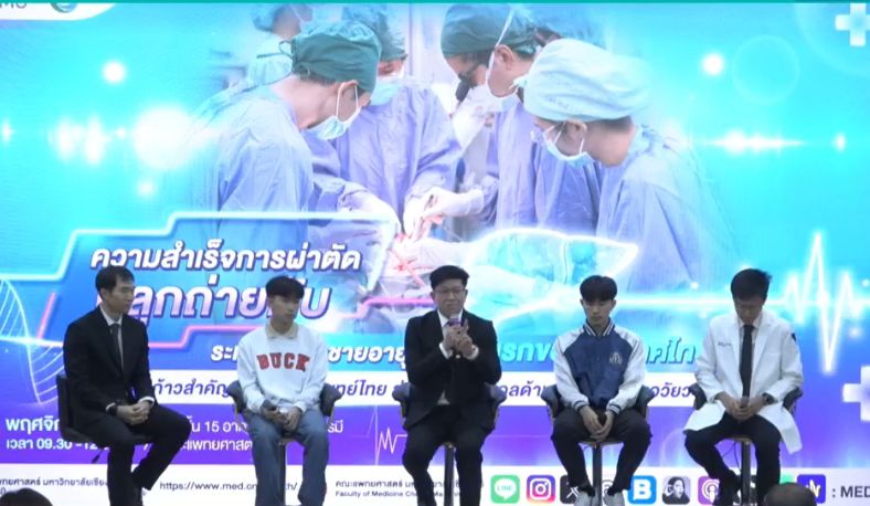 คณะแพทยศาสตร์ มช.แถลงผลสำเร็จในการผ่าตัดปลูกถ่ายตับระหว่างคู่ฝาแฝดชาย อายุ 20 ปี คู่แรกของประเทศไทยถือเป็นความก้าวหน้าครั้งสำคัญในวงการแพทย์ไทย